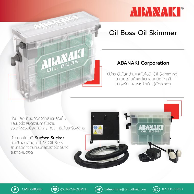 - ABANAKI Corporation ผู้นำระดับโลกด้านเทคโนโลยี Oil Skimming นำเสนอสินค้าใหม่ในกลุ่มผลิตภัณฑ์บำรุงรักษาสารหล่อเย็น (Coolant)