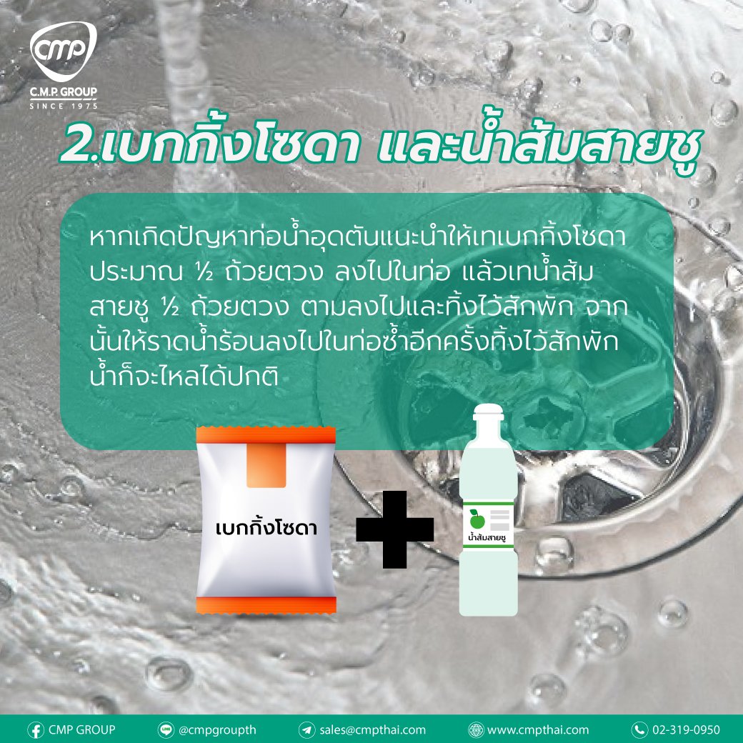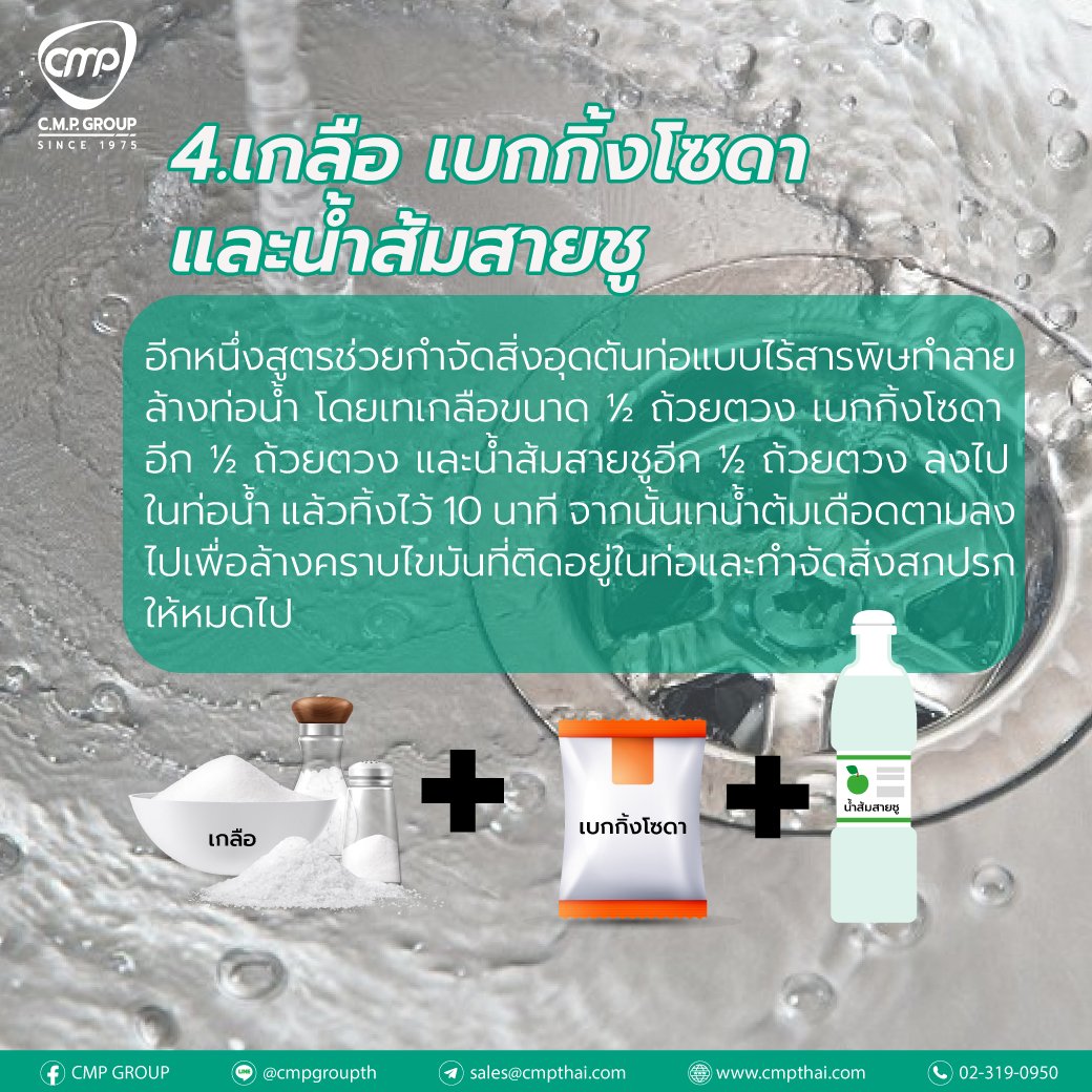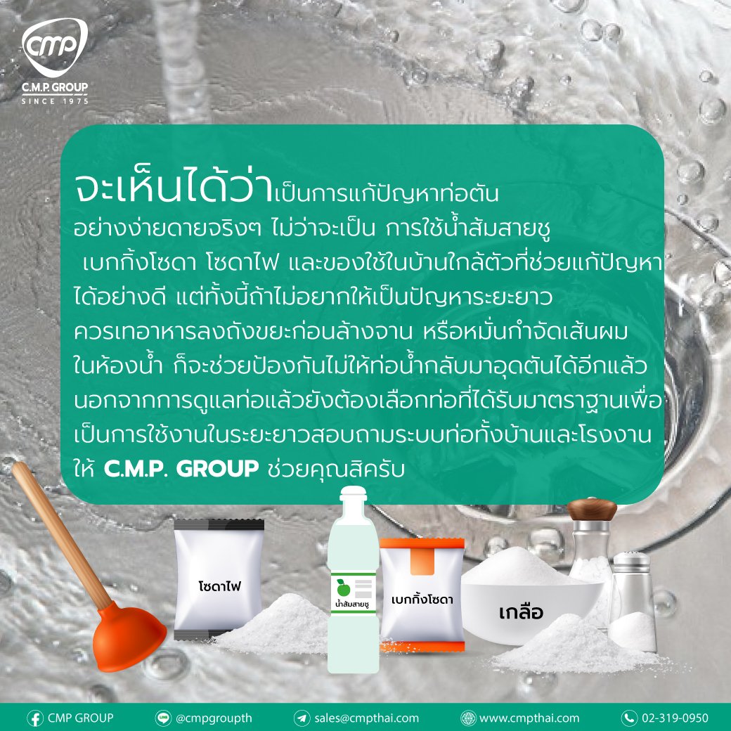 จะเห็นได้ว่าเป็นการแก้ปัญหาท่อตันอย่างง่ายดายจริง ๆไม่ว่าจะเป็น การใช้น้ำส้มสายชู เบกกิ้งโซดา โซดาไฟ และของใช้ในบ้านใกล้ตัวที่ช่วยแก้ปัญหาได้อย่างดี แต่ทั้งนี้ถ้าไม่อยากให้เป็นปัญหาระยะยาว ควรเทอาหารลงถังขยะก่อนล้างจาน หรือหมั่นกำจัดเส้นผมในห้องน้ำ ก็จะช่วยป้องกันไม่ให้ท่อน้ำกลับมาอุดตันได้อีกแล้ว นอกจากการดูแลท่อแล้วยังต้องเลือกท่อที่ได้รับมาตราฐานเพื่อเป็นการใช้งานในระยะยาวสอบถามระบบท่อทั้งบ้านและโรงงานให้ C.M.P. GROUP ช่วยคุณสิครับ