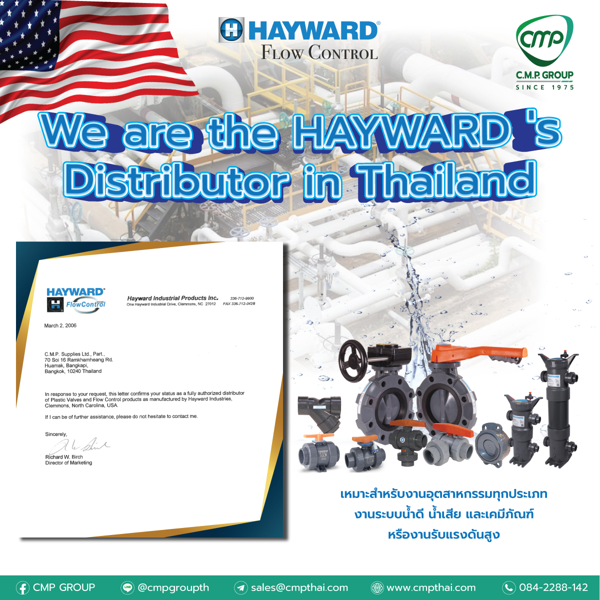 We are the Hayward 's Distributor in ThailandHayward Flow Control เป็นผู้นำในการผลิตวาล์วเทอร์โมพลาสติกอุตสาหกรรมและการควบคุมกระบวนการผลิตภัณฑ์มานานกว่า 60 ปี- CMP GROUP ได้รับการแต่งตั้งอย่างเป็นทางการจาก “Hayward Industrial Products” ประเทศสหรัฐอเมริกาให้เป็นตัวแทนจำหน่าย วาล์วพลาสติกและผลิตภัณฑ์ควบคุมการไหล ภายใต้แบรนด์ Hayward CMP GROUP เราให้บริการอย่างครบวงจรทั้งในด้านงานขาย ดูแลบริการหลังการขาย และงานด้านวิศวกรรมให้กับลูกค้า พร้อมด้วยการส่งมอบสินค้าด้วยความรวดเร็ว เพื่อเสริมการขยายธุรกิจที่รองรับกับความต้องการของลูกค้าครอบคลุมในทุกโรงงานอุตสาหกรรม เพื่อตอบสนองความต้องการที่ครบถ้วนและสร้างความพึงพอใจสูงสุดให้กับลูกค้าเป็นสำคัญ- พบกับ Hayward วาล์วพลาสติกและผลิตภัณฑ์ควบคุมการไหล คุณภาพมาตรฐานประเทศสหรัฐอเมริกา- เหมาะสำหรับงานอุตสาหกรรมทุกประเภท งานระบบน้ำดี น้ำเสีย และเคมีภัณฑ์ หรืองานรับแรงดันสูงอย่ารอช้าทักแชทมาสอบถามรายละเอียดหรือแจ้งความต้องการกันได้ สนใจเลือกดูรายละเอียดสินค้าเพิ่มเติมได้ที่